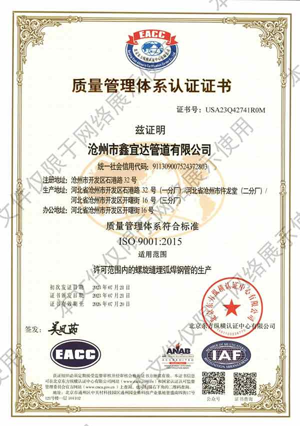 歡迎您進(jìn)入滄州市鑫宜達(dá)管道有限公司官網(wǎng)!
